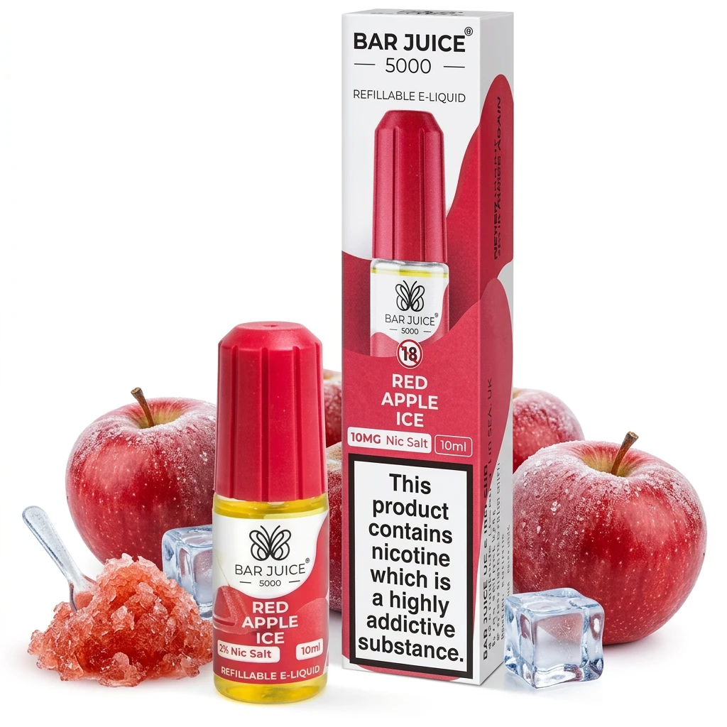 Red Apple Ice Nic Salt E-Liquid by Bar Juice 5000 opens with tangy apple on the inhale before clean ice-cool exhale sweeps in on the exhale. Neither flavour drowns the other out. The combination is well-judged and easy to vape. This kind of fruit-and-ice combination is one of the most popular styles in nic salt e-liquids, and this version does it well. This nic salt e-liquid comes in 10ml bottles at 10mg and 20mg. The salt nicotine base reaches the bloodstream more quickly than freebase nicotine and produces far less throat irritation at high strengths. The compact 10ml bottle fits easily into a pocket or bag, making it a practical choice for everyday carry.