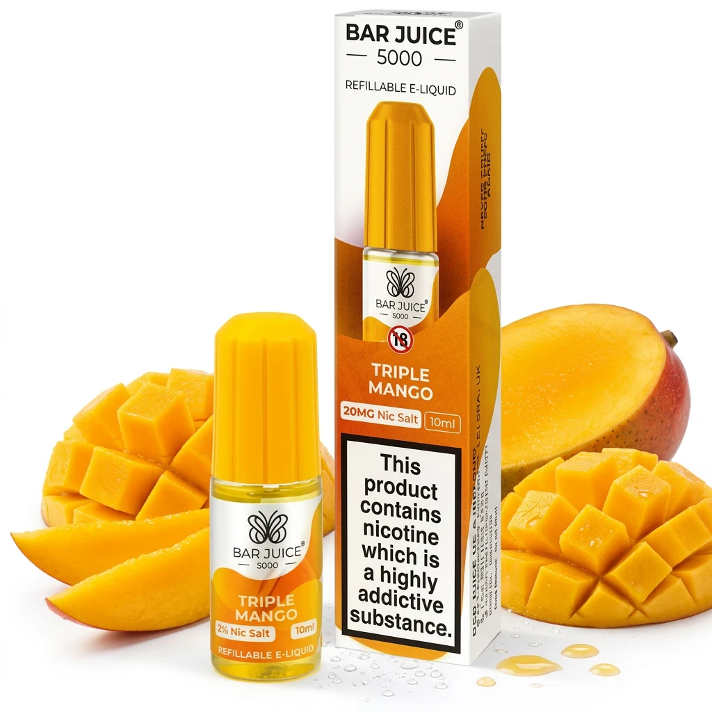 Built around tropical mango, Triple Mango Nic Salt E-Liquid by Bar Juice 5000 is a focused nic salt blend that delivers one clear, honest flavour. No distracting notes, no unnecessary complexity , just consistent, satisfying flavour throughout. If you're after a no-fuss, trustworthy vape that doesn't try to do too much, this is a solid pick.