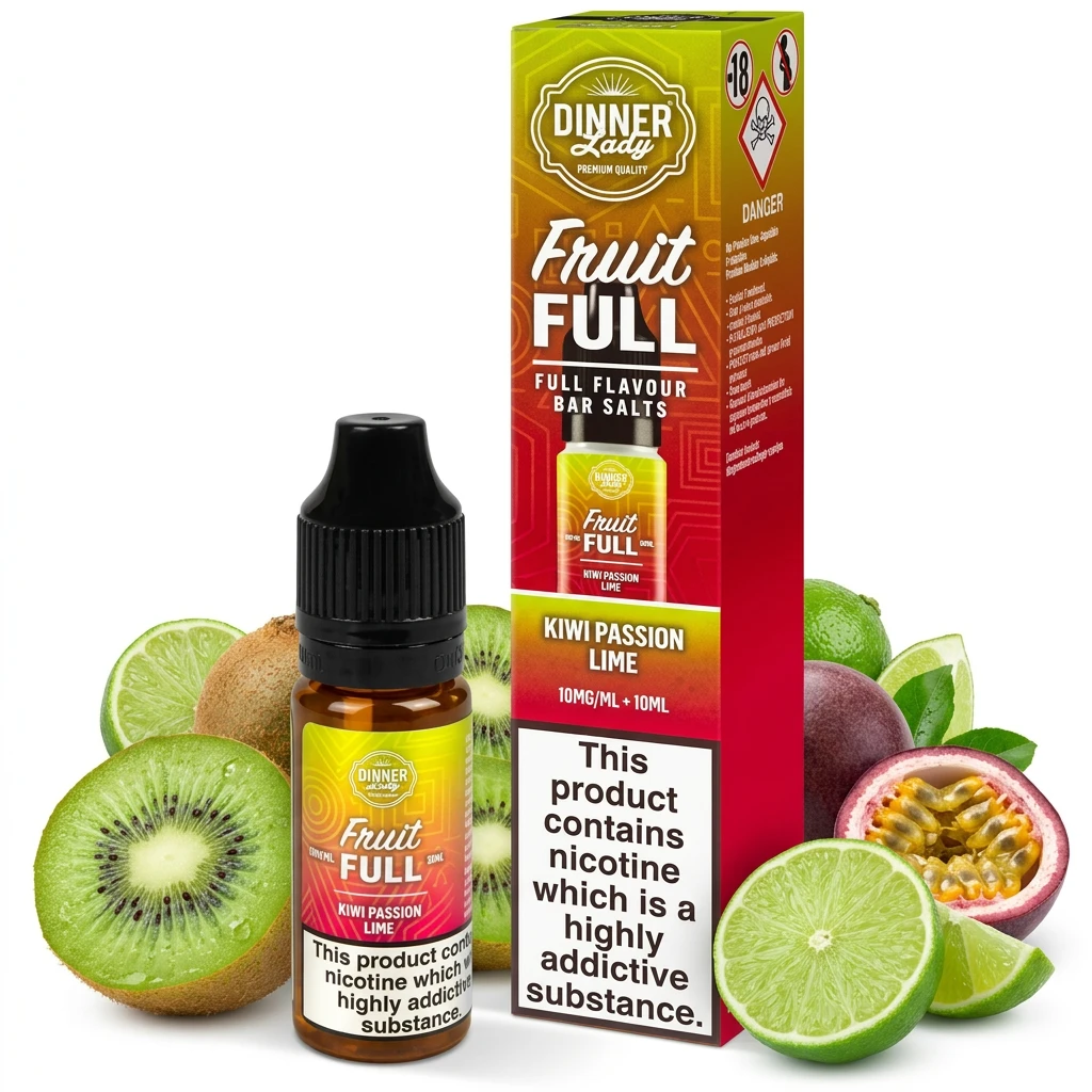 Kiwi Passion Lime Nic Salt E-Liquid by Dinner Lady Fruit Full layers sharp kiwi tang, tangy lime and tropical passion fruit tang into a well-rounded nic salt blend. Each flavour element plays its part without crowding out the others. Available in 10ml bottles at 5mg, 10mg and 20mg. The salt nicotine base reaches the bloodstream more quickly than freebase nicotine and produces far less throat irritation at high strengths. The 10ml size is the standard format for nic salt e-liquids and is compatible with most refillable pod kits on the market.