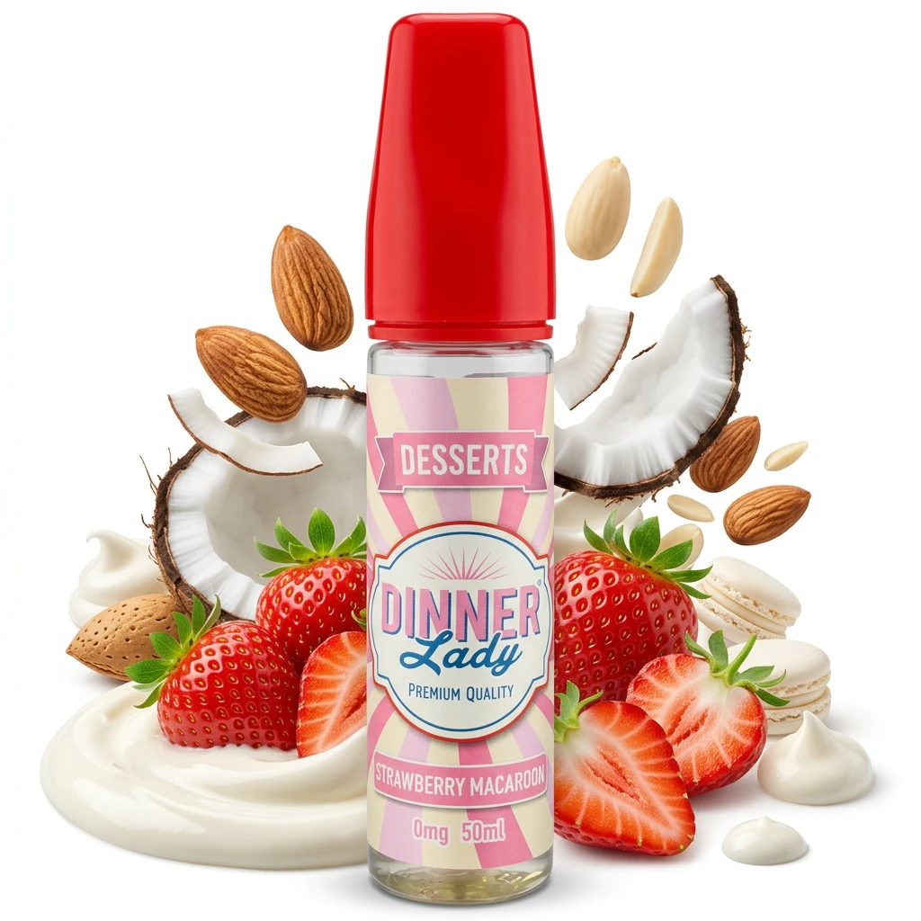 Bringing together sweet almond notes, smooth coconut notes and rich cream sweetness, Strawberry Macaroon Shortfill E-Liquid by Dinner Lady 50ml offers a layered shortfill with more flavour depth than a single or two-note blend. Nothing feels out of place , the combination holds together naturally. This is a 50ml shortfill bottled at 0mg in a 60ml container, with space for a single 10ml nicotine shot. Adding an 18mg nic booster creates approximately 3mg across the full 60ml , a practical and flexible format. Leave the space empty if you prefer a nicotine-free vape.