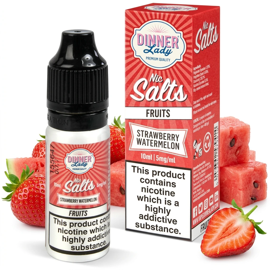 The flavour profile in Strawberry Watermelon Nic Salt E-Liquid by Dinner Lady balances juicy strawberry against juicy watermelon for a well-matched blend. Neither flavour dominates , the blend is well-judged and consistent throughout. The profile doesn't become tiring over long sessions, making it a dependable daily vape.