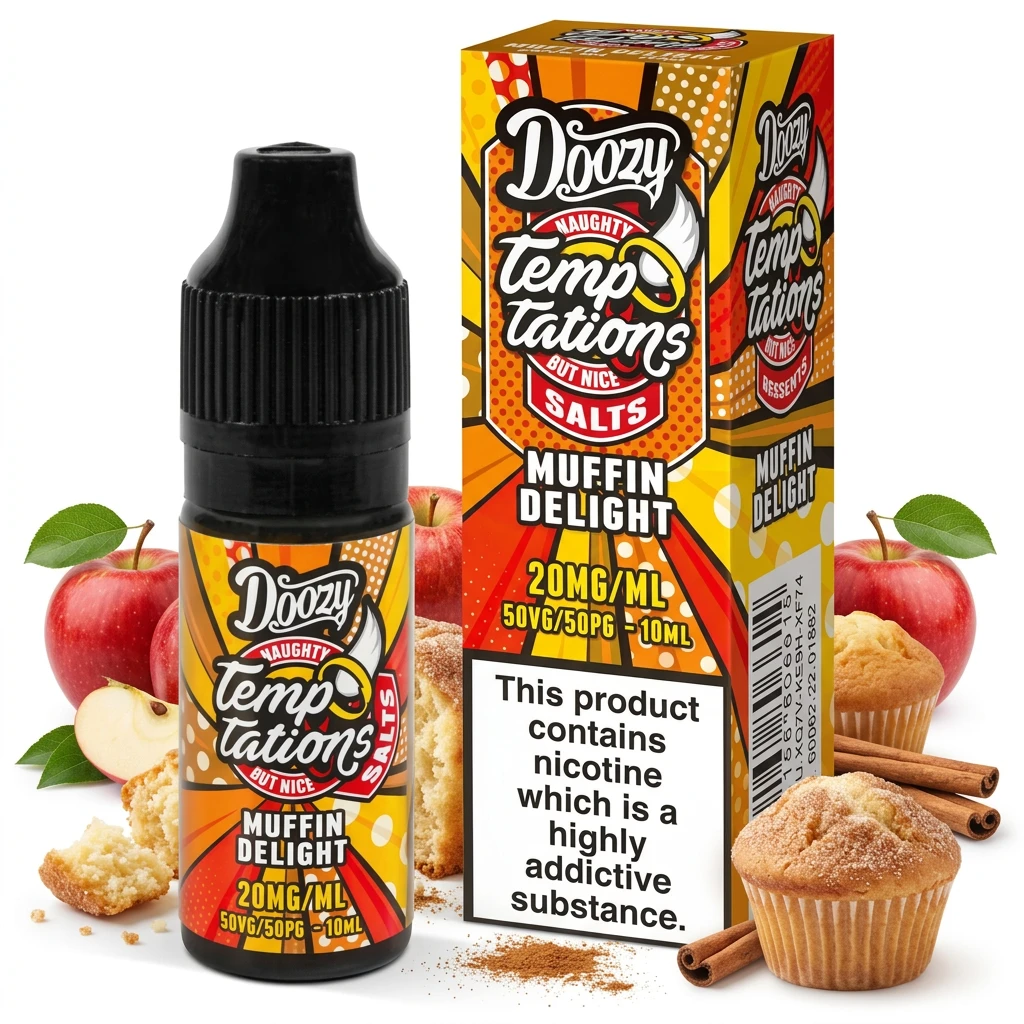 With crisp green apple on the inhale, sweet sponge cake through the mid-draw and spiced cinnamon on the exhale, Muffin Delight Nic Salt E-Liquid by Doozy Temptations delivers a full, complex vape. The three notes are well-balanced and work together to create a coherent blend.