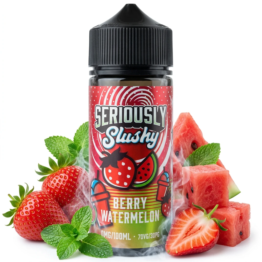 Berry Watermelon Shortfill E-Liquid by Seriously Slushy 100ml draws on clean menthol freshness, ripe garden strawberry and fresh watermelon for a complex, well-rounded shortfill vape. The blend holds up across multiple tanks and the profile stays coherent even during longer vaping sessions.