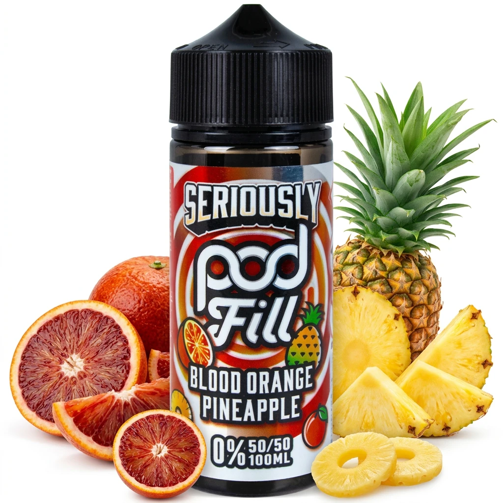 Combining fresh orange citrus with tangy pineapple sweetness, Blood Orange Pineapple Shortfill E-Liquid by Seriously Pod Fill 100ml delivers a two-note shortfill that's satisfying over longer sessions. Neither flavour overshadows the other and the overall profile stays consistent across multiple refills. Bottled at 0mg in a 120ml container, this 100ml shortfill accommodates two 10ml nic shots. Adding two 18mg boosters creates a finished strength of around 3mg across the full 120ml , adjust with different nic shot strengths to suit your preferences. The 100ml size offers excellent value per millilitre.