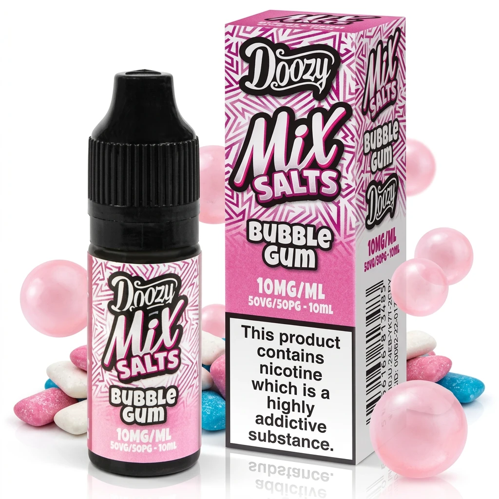 Bubblegum Nic Salt E-Liquid by Doozy Mix Salts is a clean, single-note nic salt e-liquid centred on fruity bubblegum. The profile stays true across multiple tanks, making this a dependable everyday choice. A reliable single-note option for vapers who know what they like and don't want anything in the way.