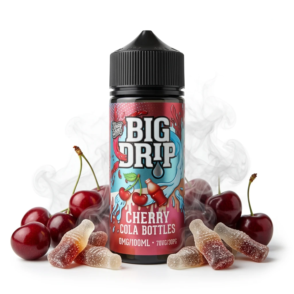 Cherry Cola Bottles Shortfill E-Liquid by Big Drip 100ml is a multi-note shortfill drawing together bold cherry notes, familiar cola sweetness and sweet candy character. The blend is well-balanced, with each element making a clear contribution to the overall profile without any one note dominating.