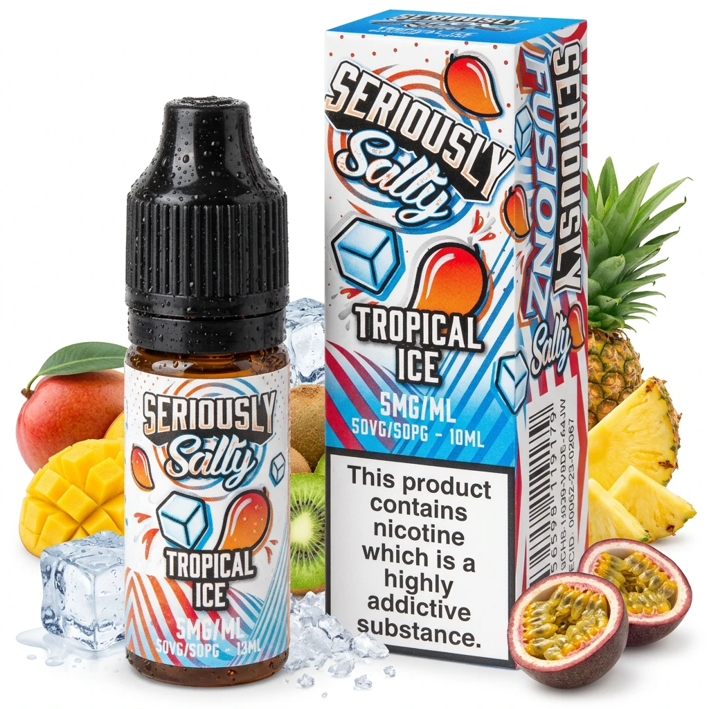 The flavour in Tropical Ice Nic Salt E-Liquid by Seriously Fusionz builds from frosty ice hit on the inhale to a blend of tropical flavours on the out-breath. The warm fruit notes and cool finish sit well together, creating a balanced vape that's satisfying all day. It's a well-executed pairing that works at every strength in the range. This nic salt e-liquid comes in 10ml bottles at 5mg, 10mg and 20mg. As a nic salt, this liquid hits faster and smoother than freebase nicotine at equivalent strengths , ideal for vapers who want quick, satisfying nicotine delivery. The compact 10ml bottle fits easily into a pocket or bag, making it a practical choice for everyday carry.