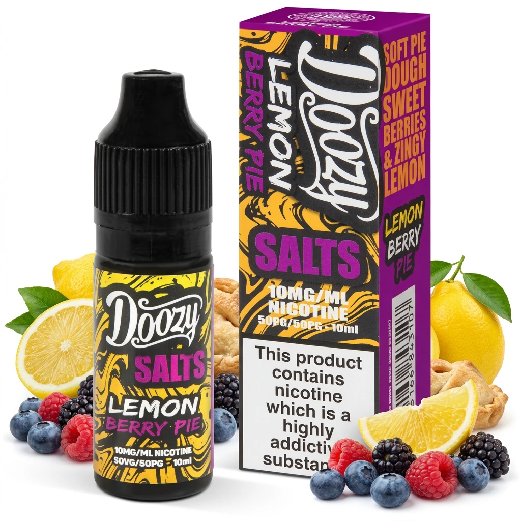 Combining sharp lemon citrus, a medley of mixed berries and buttery pastry base, Lemon Berry Pie Nic Salt E-Liquid by Doozy Salts delivers a layered, multi-note nic salt e-liquid. The complexity keeps things interesting without becoming hard to read. A satisfying, multi-note vape.