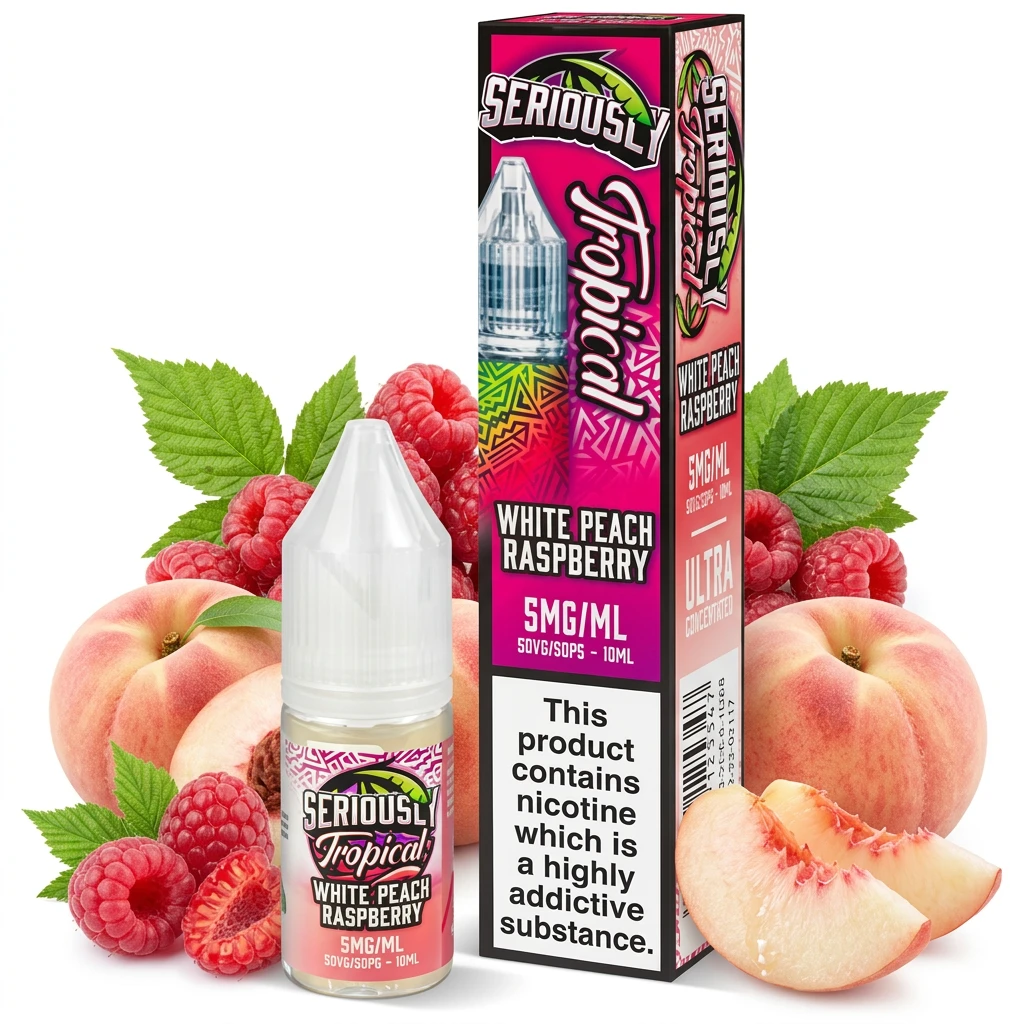 White Peach Raspberry Nic Salt E-Liquid by Seriously Tropical brings together mellow peach sweetness and vivid raspberry in a well-balanced nic salt blend. The combination works well and holds up from the first puff to the last. A solid choice if you're after a balanced, two-flavour nic salt that won't let you down.