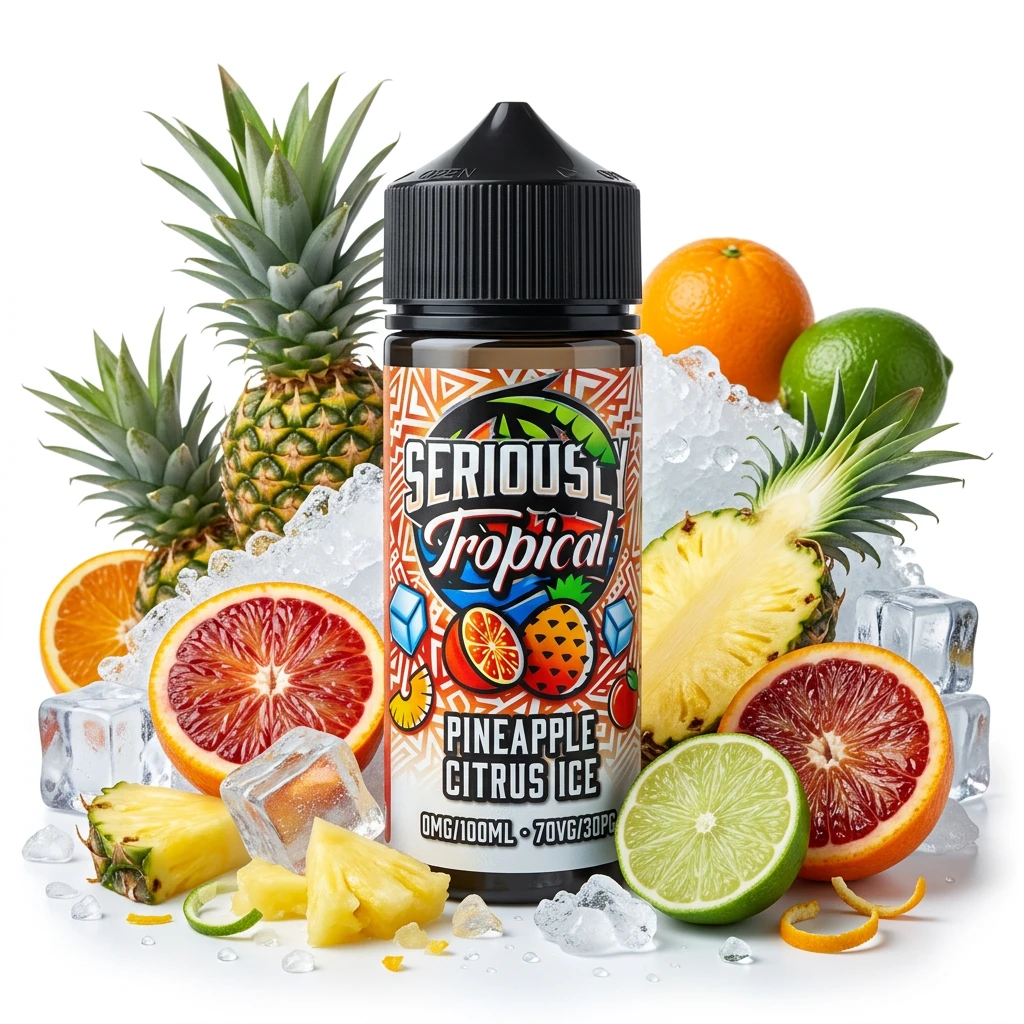 Pineapple Citrus Ice Shortfill E-Liquid by Seriously Tropical 100ml layers sharp citrus sweetness and icy cooling on the exhale before finishing with fresh pineapple for a complex, multi-note shortfill with a cooling close. Each element contributes to a profile that stays interesting across the whole tank without becoming cluttered or hard to read.