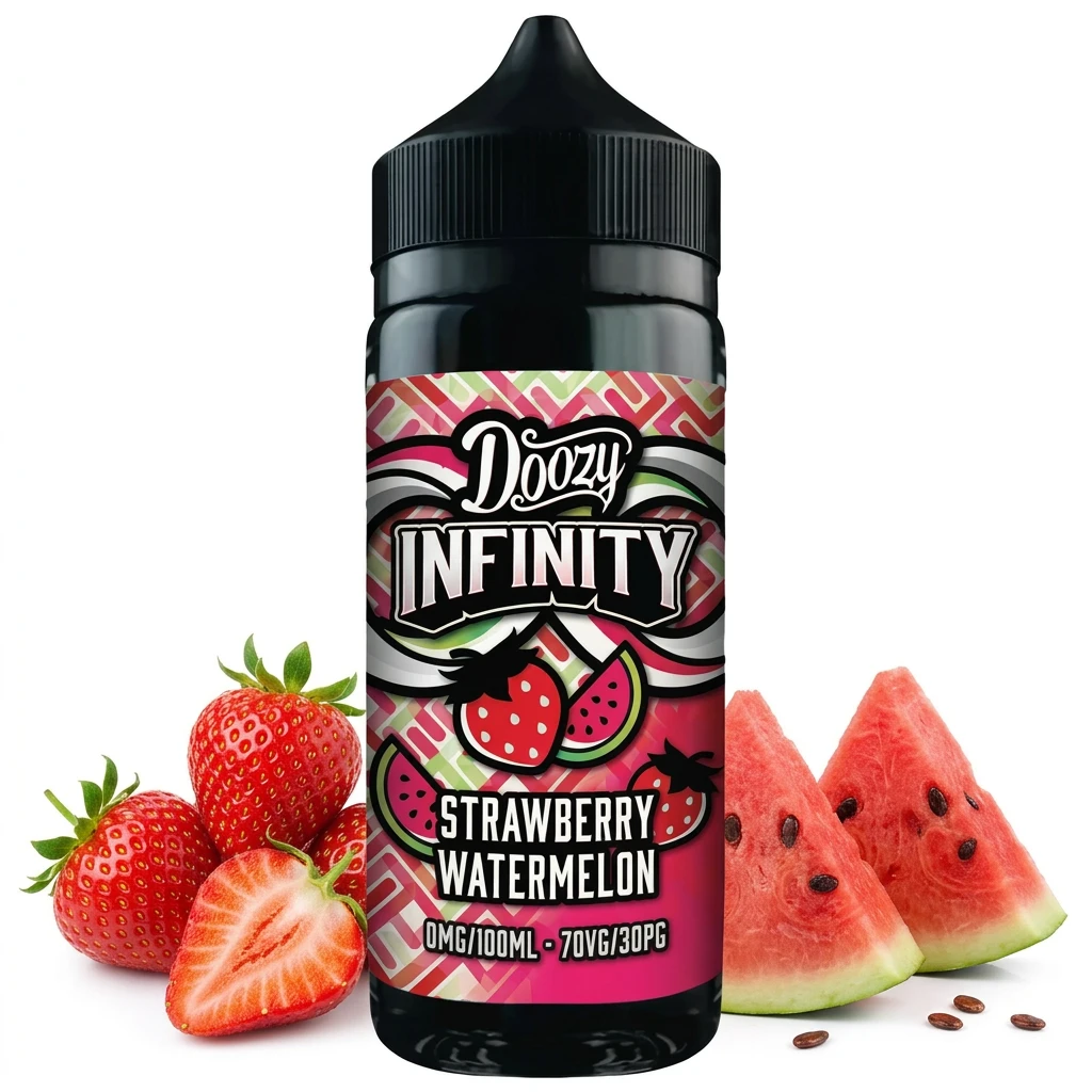 Strawberry Watermelon Shortfill E-Liquid by Doozy Infinity 100ml brings ripe garden strawberry and cool watermelon flesh together in a coherent, well-matched shortfill blend. The flavour balance feels natural and stays consistent from the first draw to the last drop of the bottle.