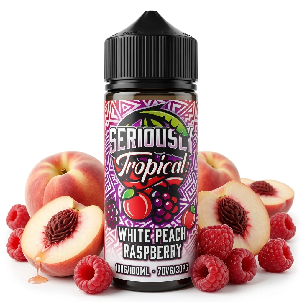 White Peach Raspberry Shortfill E-Liquid by Seriously Tropical 100ml brings sweet ripe peach and vivid raspberry together in a coherent, well-matched shortfill blend. The flavour balance feels natural and stays consistent from the first draw to the last drop of the bottle.
