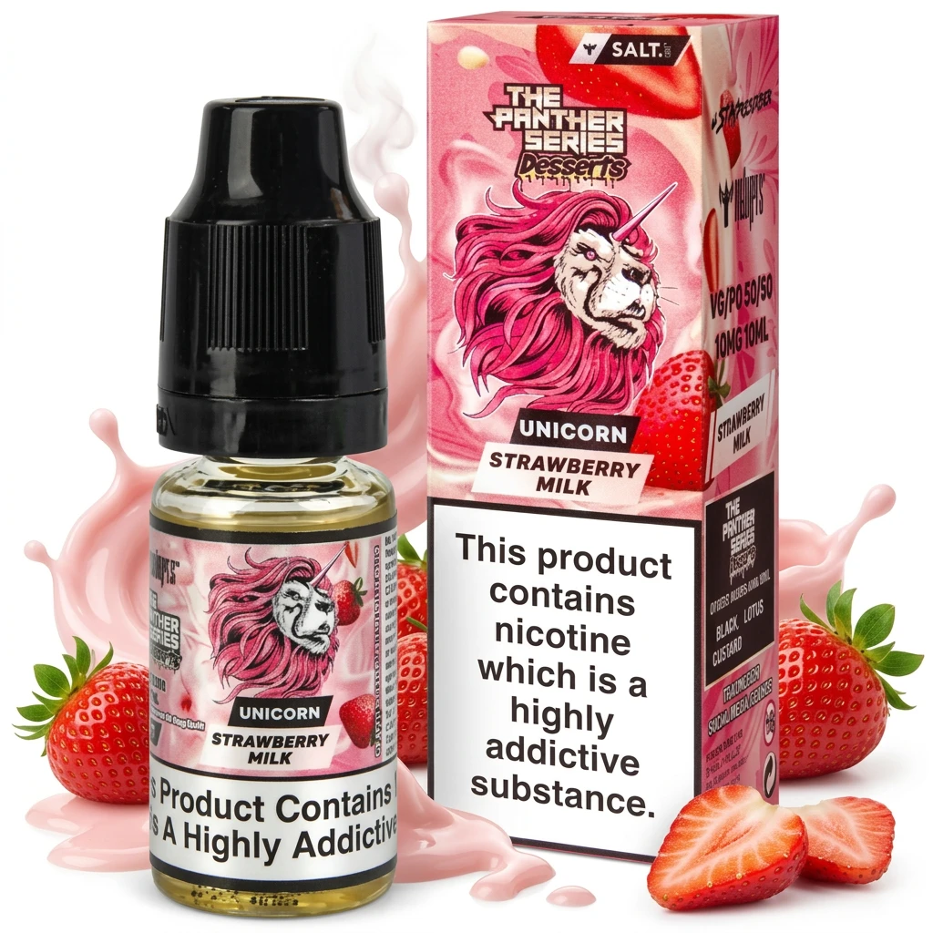 Unicorn Nic Salt E-Liquid by Dr Vapes brings together rich thick milkshake and bold strawberry in a well-balanced nic salt blend. The two flavours sit naturally together, making this a solid all-day vape. The profile doesn't become tiring over long sessions, making it a dependable daily vape.