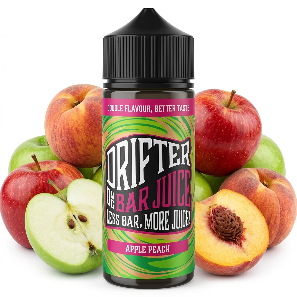 Apple Peach Shortfill E-Liquid by Drifter Bar Juice 100ml brings fresh apple bite and fragrant peach together in a coherent, well-matched shortfill blend. The flavour balance feels natural and stays consistent from the first draw to the last drop of the bottle.