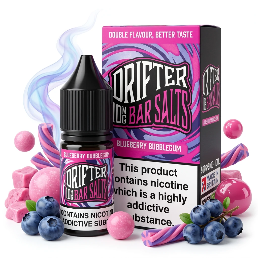 Blueberry Bubblegum Nic Salt E-Liquid by Drifter Bar Salts brings together deep blueberry and classic bubblegum sweetness in a well-balanced nic salt blend. Both notes come through clearly, giving you a satisfying, balanced vaping experience. A solid choice if you're after a balanced, two-flavour nic salt that won't let you down.