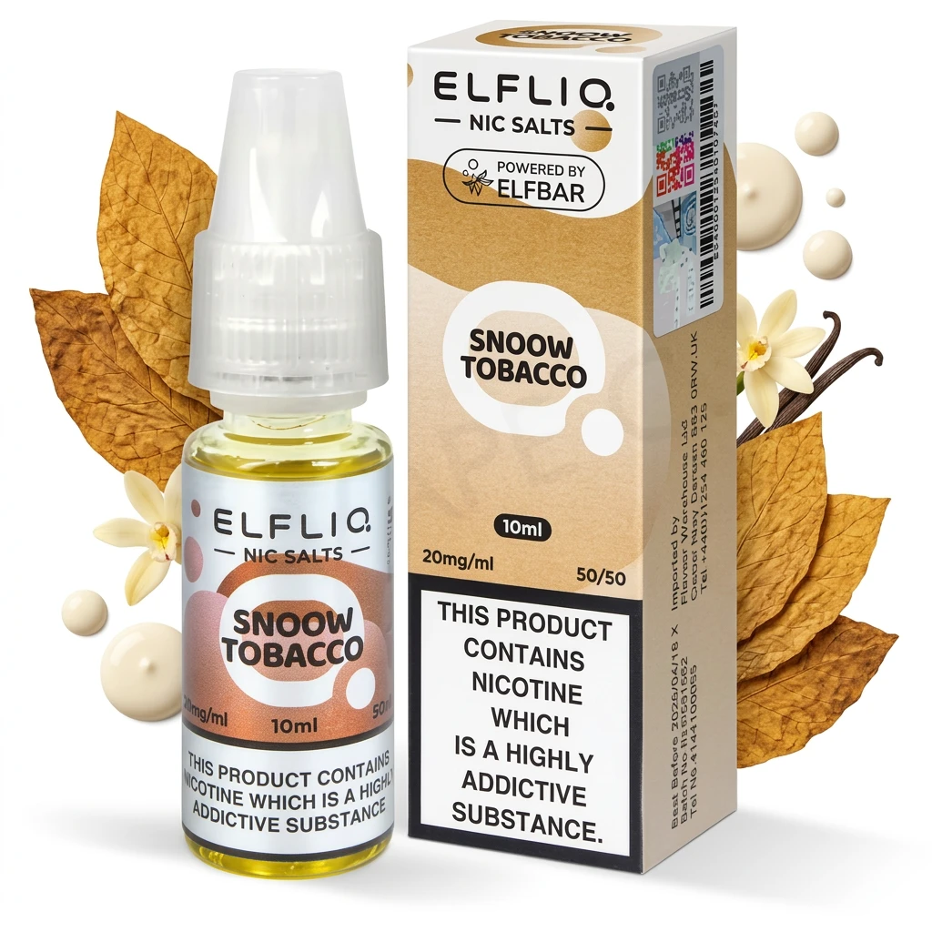 Snoow Tobacco Nic Salt E-Liquid by Elf Bar Elfliq pairs smooth velvety cream with full-bodied tobacco for a two-note nic salt e-liquid. Neither flavour dominates , the blend is well-judged and consistent throughout. The profile doesn't become tiring over long sessions, making it a dependable daily vape.