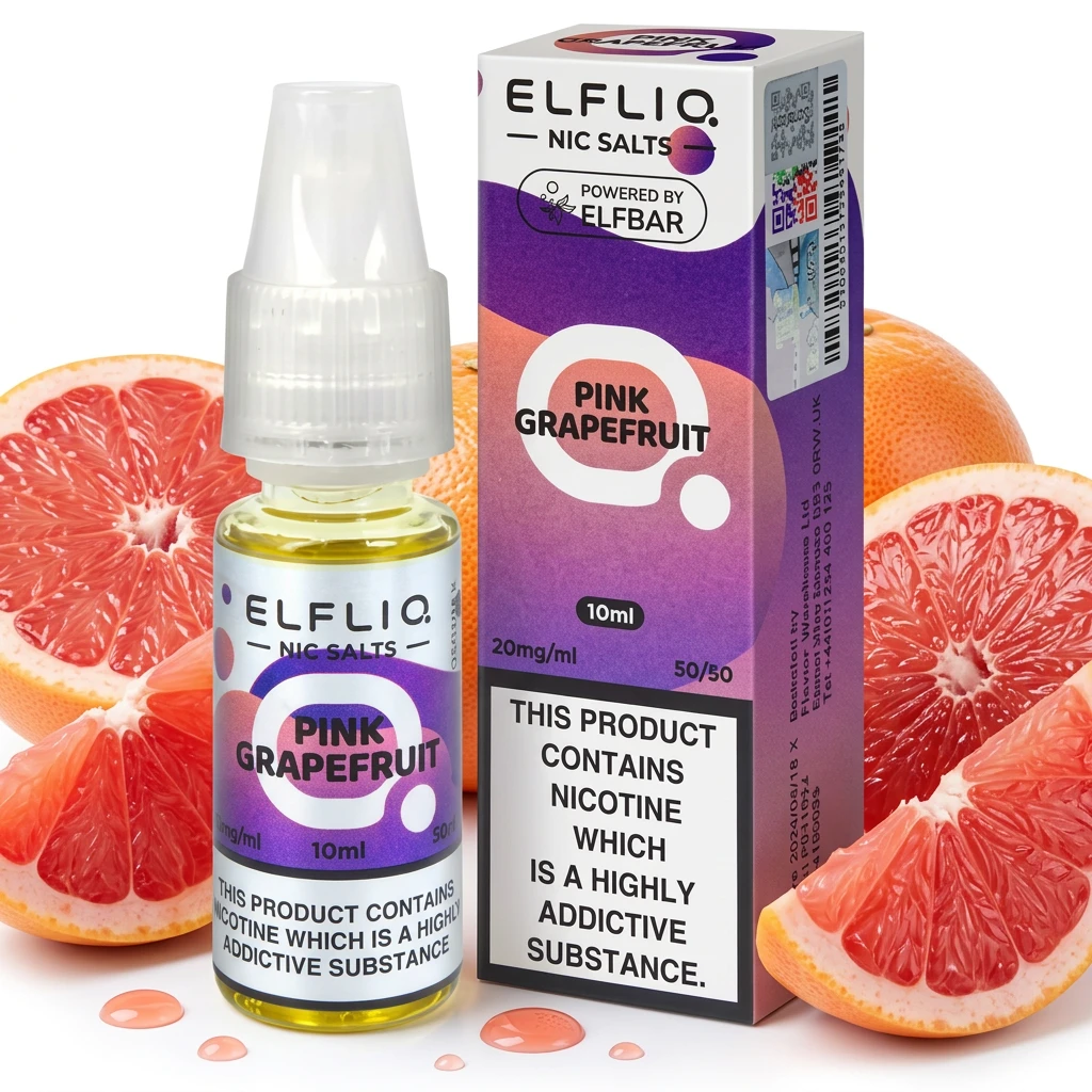 A single-note nic salt blend, Pink Grapefruit Nic Salt E-Liquid by Elf Bar Elfliq focuses entirely on sharp grapefruit citrus without added complexity. The flavour is faithful and consistent across all nicotine strengths , a reliable, easy all-day vape. A reliable single-note option for vapers who know what they like and don't want anything in the way.