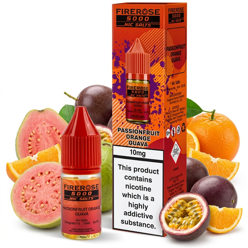 Combining fragrant guava, sweet orange and exotic passion fruit sweetness, Passionfruit Orange Guava Nic Salt E-Liquid by Elux Firerose delivers a layered, multi-note nic salt e-liquid. Each flavour element plays its part without crowding out the others. This nic salt e-liquid comes in 10ml bottles at 10mg and 20mg. Salt nicotine absorbs into the bloodstream faster than freebase nicotine and provides a noticeably smoother throat hit, even at higher strengths like 20mg. The compact 10ml bottle fits easily into a pocket or bag, making it a practical choice for everyday carry.