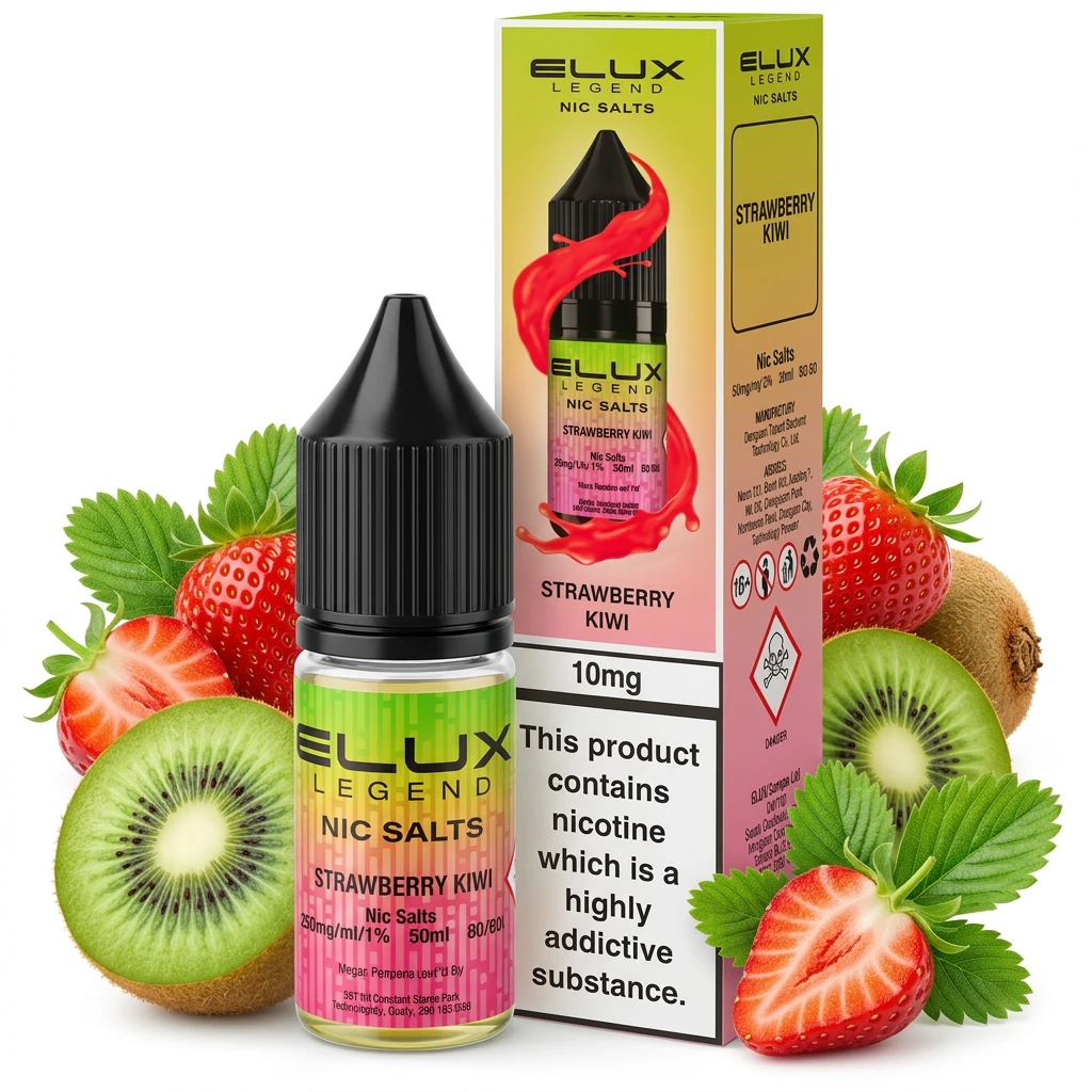 Strawberry Kiwi Nic Salt E-Liquid by Elux Legend pairs zesty kiwi character with fresh-picked strawberry for a two-note nic salt e-liquid. The combination works well and holds up from the first puff to the last. The profile doesn't become tiring over long sessions, making it a dependable daily vape. You can get it in 5mg, 10mg and 20mg, packaged in standard 10ml bottles that work with most pod kits. Nic salts absorb faster than freebase nicotine and keep the throat hit comfortable even at 20mg, making them well suited to anyone managing cravings. The nic salt format is a popular choice for vapers who have recently switched from cigarettes.