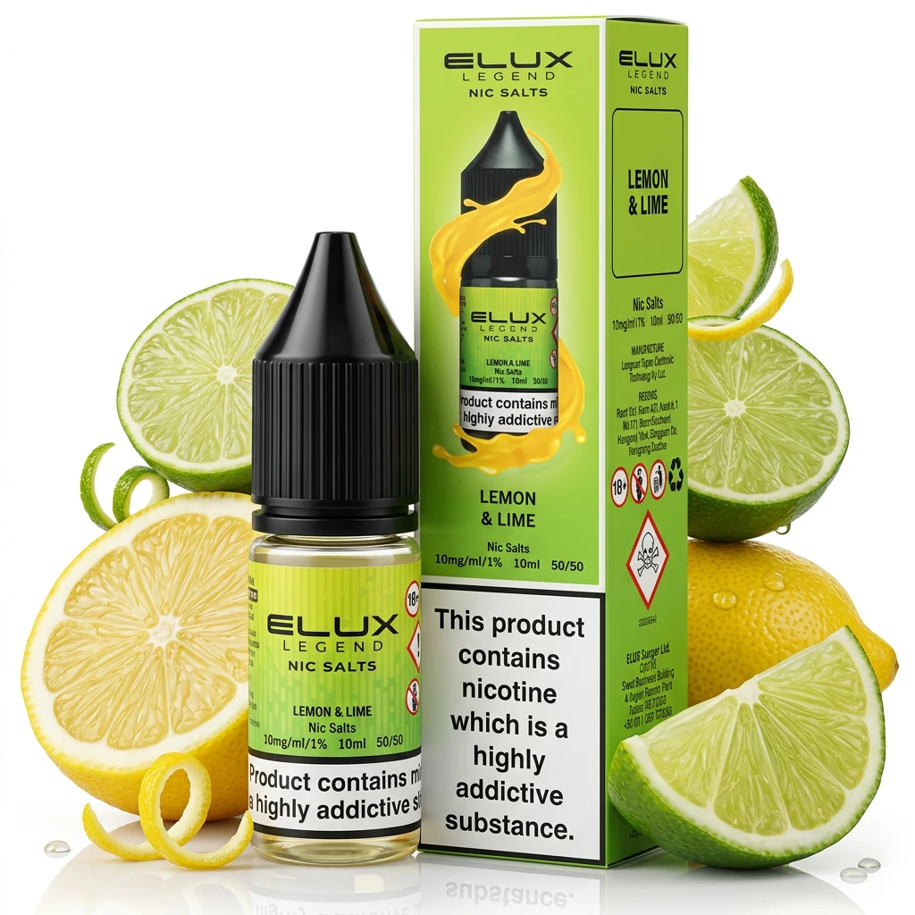 The flavour profile in Lemon & Lime Nic Salt E-Liquid by Elux Legend balances bright zesty lemon against sharp lime zest for a well-matched blend. The combination works well and holds up from the first puff to the last. The profile doesn't become tiring over long sessions, making it a dependable daily vape. It's stocked in 10ml bottles at 5mg, 10mg and 20mg , enough options to match your current nicotine intake without having to stick to a single fixed strength. As a nic salt, this liquid hits faster and smoother than freebase nicotine at equivalent strengths , ideal for vapers who want quick, satisfying nicotine delivery.