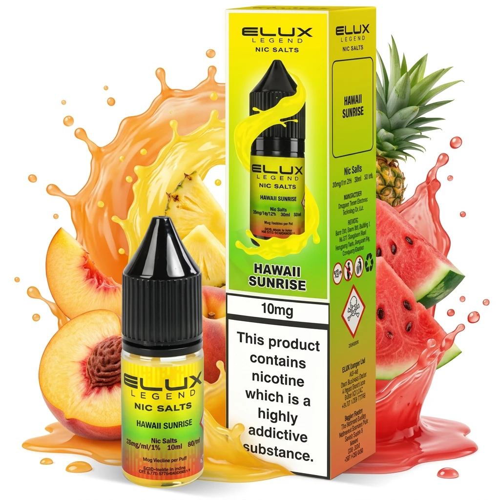 Combining mellow peach sweetness, tangy pineapple sweetness and natural watermelon, Hawaii Sunrise Nic Salt E-Liquid by Elux Legend delivers a layered, multi-note nic salt e-liquid. The complexity keeps things interesting without becoming hard to read. A satisfying, multi-note vape.