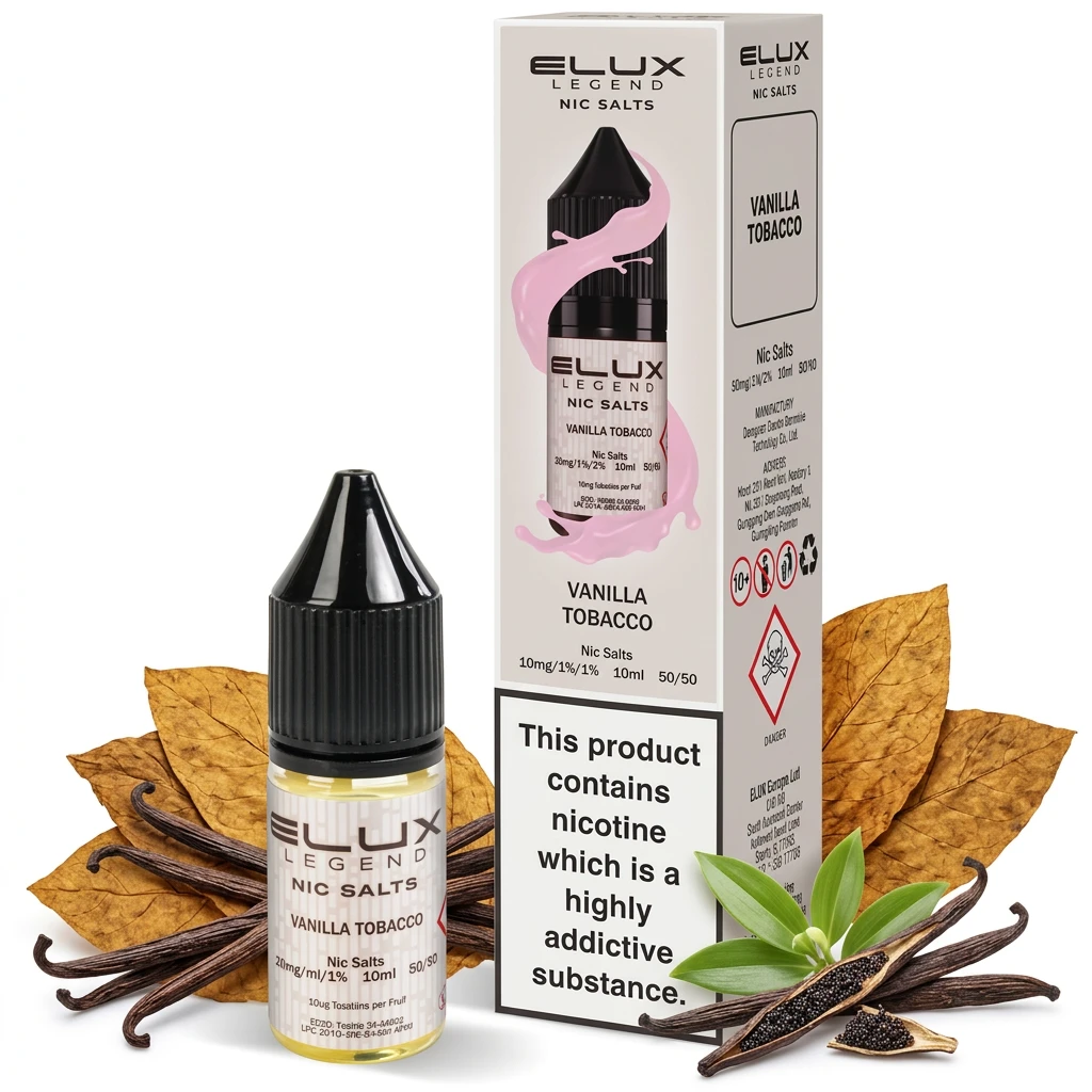 The flavour profile in Vanilla Tobacco Nic Salt E-Liquid by Elux Legend balances smooth tobacco against smooth creamy vanilla for a well-matched blend. Neither flavour dominates , the blend is well-judged and consistent throughout. Well-matched and easy to vape , a consistent choice for everyday use. This nic salt e-liquid comes in 10ml bottles at 10mg and 20mg. The nic salt format delivers a faster nicotine hit than freebase liquid and is notably gentler on the throat , a key reason many ex-smokers prefer it. The compact 10ml bottle fits easily into a pocket or bag, making it a practical choice for everyday carry.