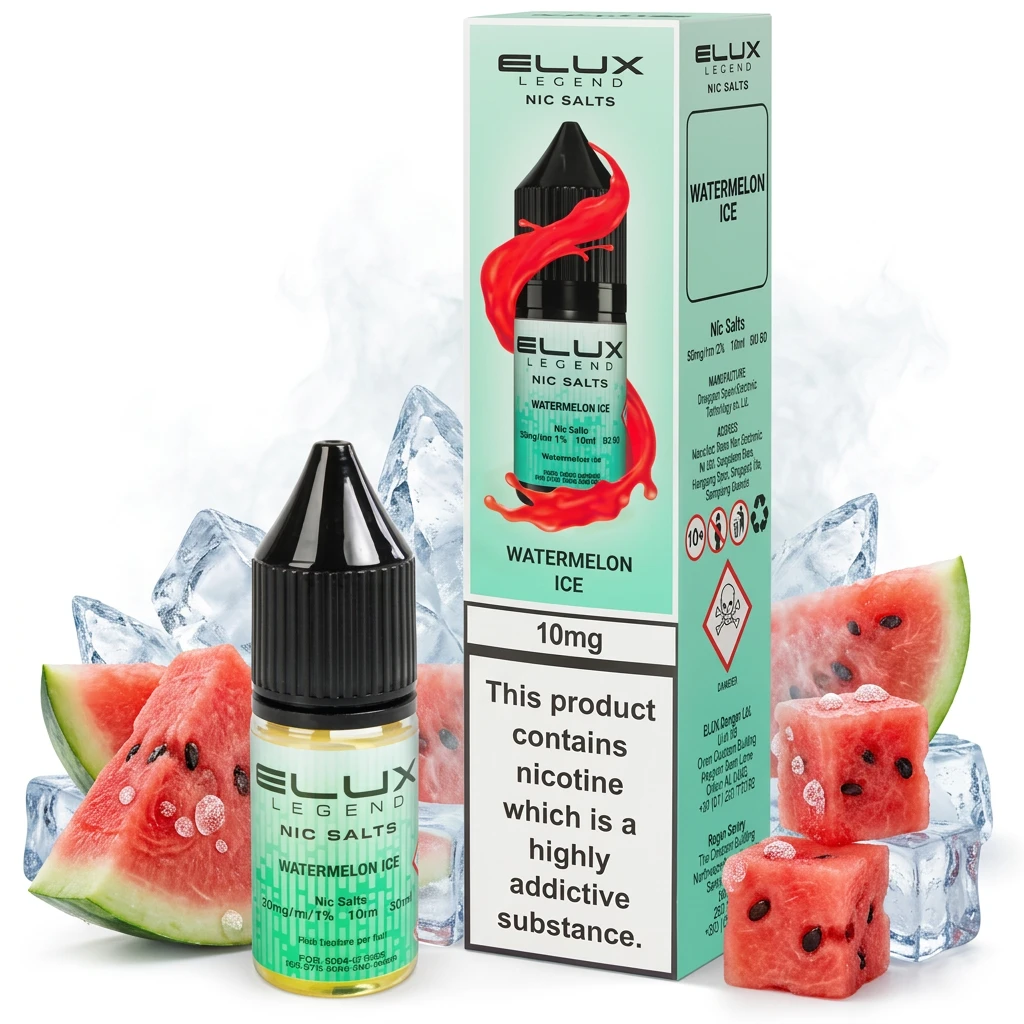 Watermelon Ice Nic Salt E-Liquid by Elux Legend pairs sharp slush-like coolness sweetness with natural watermelon for a fruit-and-cool nic salt blend. The contrast between the sweetness and the cooling element is what makes this blend work. If you like your vape sweet on the inhale and cool on the exhale, this is a solid choice.