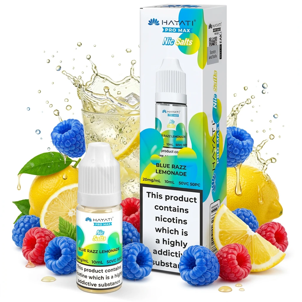 With bright blue raspberry on the inhale, refreshing lemonade through the mid-draw and sharp raspberry tang on the exhale, Blue Razz Lemonade E-Liquid by Hayati Pro Max Nic Salts delivers a full, complex vape. Each flavour element plays its part without crowding out the others. You can get it in 10mg and 20mg, packaged in standard 10ml bottles that work with most pod kits. As a nic salt, this liquid hits faster and smoother than freebase nicotine at equivalent strengths , ideal for vapers who want quick, satisfying nicotine delivery. The nic salt format is a popular choice for vapers who have recently switched from cigarettes.