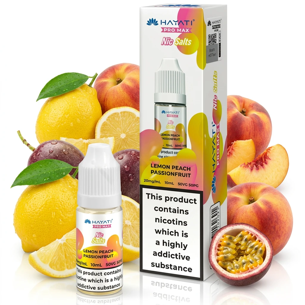 Lemon Peach Passionfruit E-Liquid by Hayati Pro Max Nic Salts layers bright zesty lemon, exotic passion fruit sweetness and mellow peach sweetness into a well-rounded nic salt blend. Each flavour element plays its part without crowding out the others.