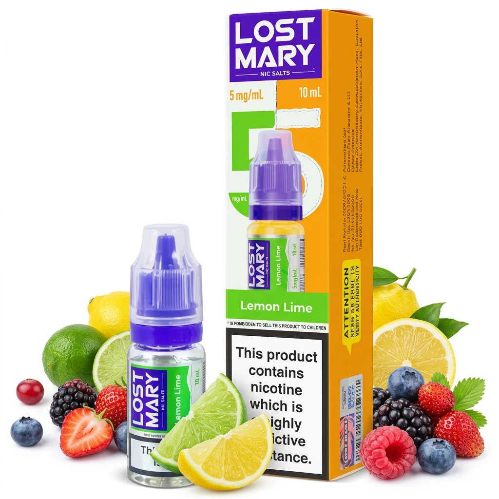 Combining zingy lemon freshness, bright lime notes and a sweet-tart berry mix, Lemon Lime Nic Salt E-Liquid by Lost Mary delivers a layered, multi-note nic salt e-liquid. Each flavour element plays its part without crowding out the others. You can get it in 5mg, 10mg and 20mg, packaged in standard 10ml bottles that work with most pod kits. The nic salt format delivers a faster nicotine hit than freebase liquid and is notably gentler on the throat , a key reason many ex-smokers prefer it. The nic salt format is a popular choice for vapers who have recently switched from cigarettes.