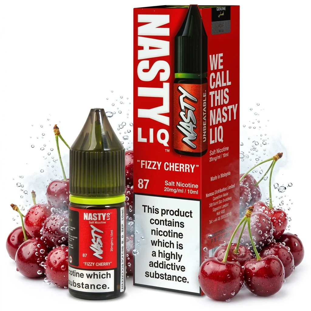 The flavour profile in Fizzy Cherry Nic Salt E-Liquid by Nasty Liq balances deep cherry sweetness against refreshing soda pop tang for a well-matched blend. Neither flavour dominates , the blend is well-judged and consistent throughout. A solid choice if you're after a balanced, two-flavour nic salt that won't let you down. Bottled in 10ml at 10mg and 20mg. As a nic salt, this liquid hits faster and smoother than freebase nicotine at equivalent strengths , ideal for vapers who want quick, satisfying nicotine delivery. The range of strengths gives you flexibility to dial in your preferred nicotine level without committing to a single option.