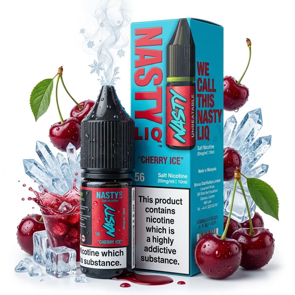 Cherry Ice Nic Salt E-Liquid by Nasty Liq opens with rich cherry on the inhale before frosty ice hit sweeps in on the exhale. Both components come through clearly , the fruit first, the cool finish second. If you like your vape sweet on the inhale and cool on the exhale, this is a solid choice.