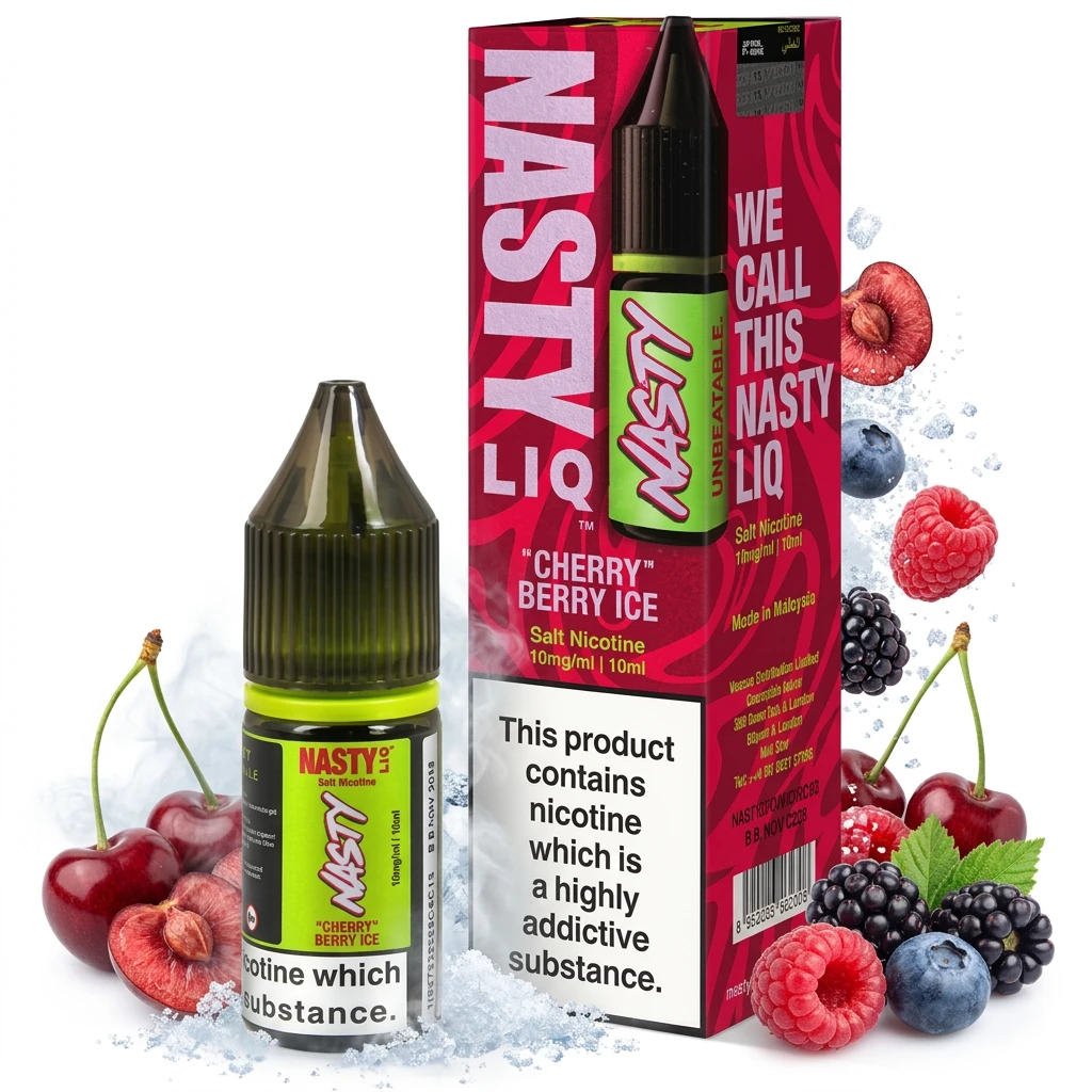 Cherry Berry Ice Nic Salt E-Liquid by Nasty Liq pairs rich cherry with a sweet-tart berry mix for a two-note nic salt e-liquid. Both notes come through clearly, giving you a satisfying, balanced vaping experience. Well-matched and easy to vape , a consistent choice for everyday use.