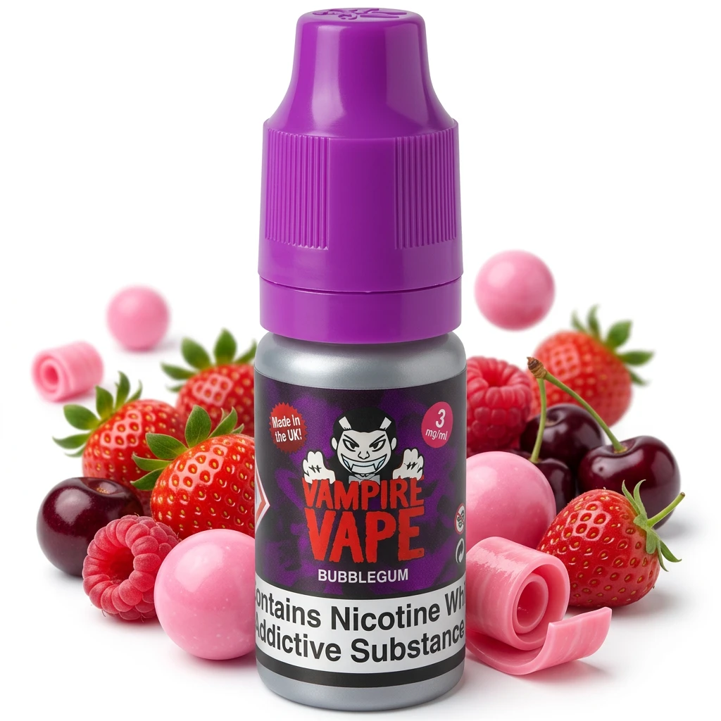 Bubblegum E-Liquid by Vampire Vape is a freebase e-liquid with a clean, one-note profile built around sweet chewy bubblegum. No added complexity, no distracting notes , just a faithful, consistent flavour from first draw to last. The profile holds up well across all available nicotine strengths.