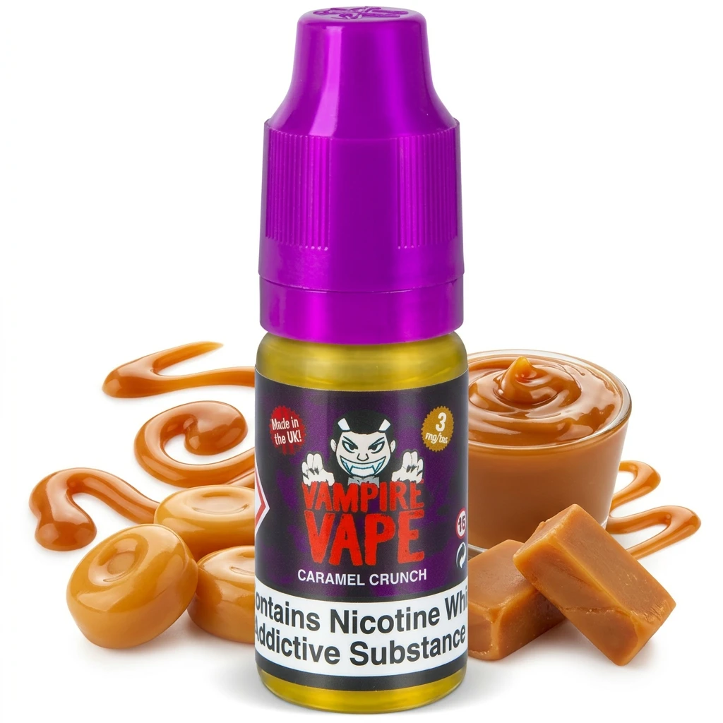 Combining Butterscotch, golden caramel character and deep toffee character, Caramel Crunch E-Liquid by Vampire Vape offers a well-rounded, multi-note freebase vape. The blend is structured naturally and holds together across multiple tanks without the profile shifting.