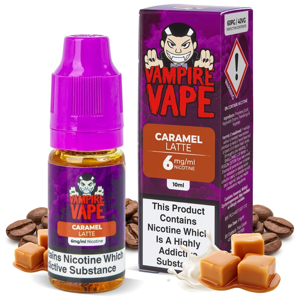 Combining deep caramel notes, smooth coffee notes and rich thick milkshake, Caramel Latte E-Liquid by Vampire Vape offers a well-rounded, multi-note freebase vape. The blend is structured naturally and holds together across multiple tanks without the profile shifting.