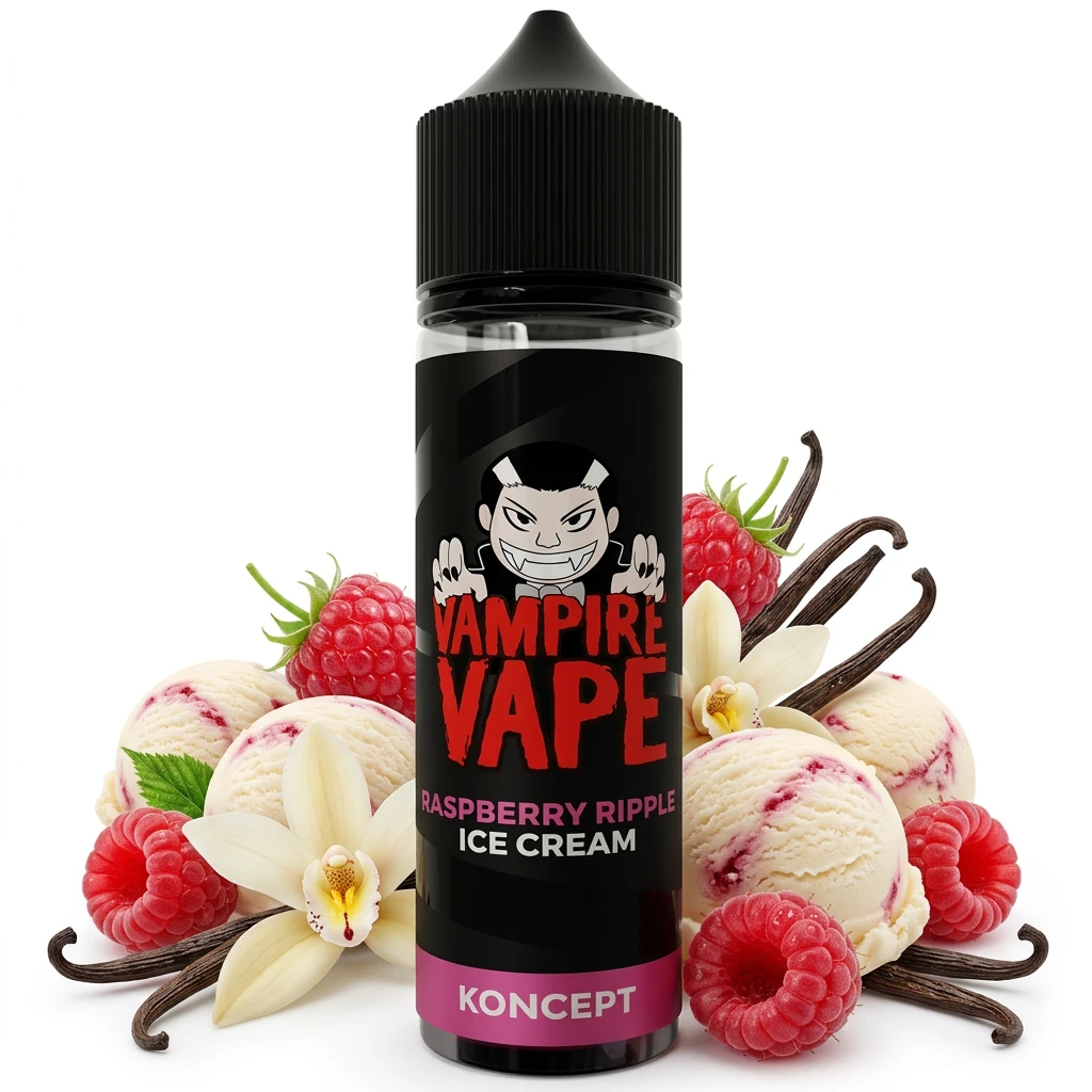 Raspberry Ripple Ice Cream Shortfill E-Liquid by Vampire Vape 50ml layers rich ice cream and tart raspberry notes before finishing with soft vanilla sweetness for a complex, multi-note shortfill with a cooling close. Each element contributes to a profile that stays interesting across the whole tank without becoming cluttered or hard to read.