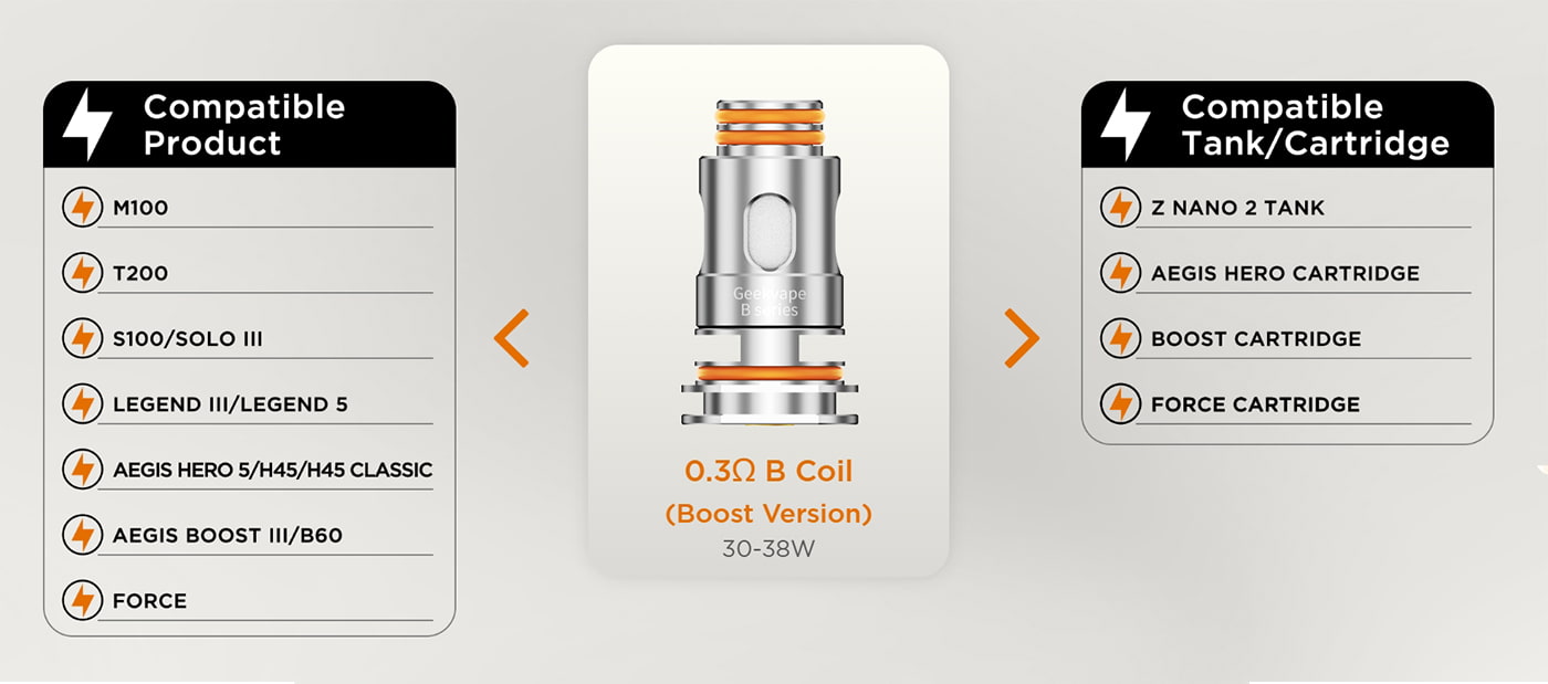 • 0.3Ω B Coil (Boost Version) — 30–38W