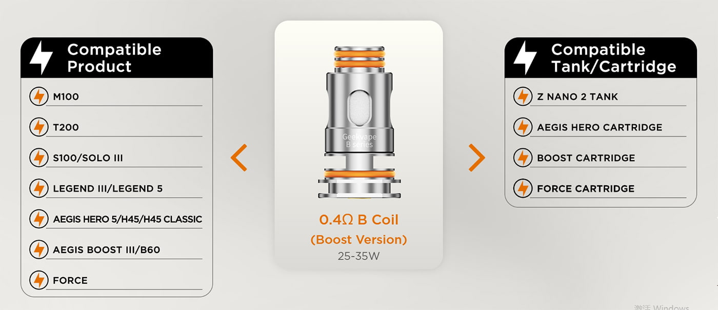 • 0.4Ω B Coil (Boost Version) — 25–35W
