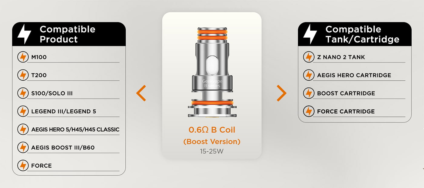 • 0.6Ω B Coil (Boost Version) — 15–25W