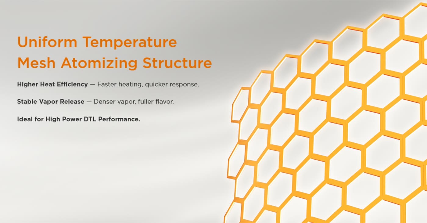 Mesh heating technology ensures rapid, even heat distribution across the coil surface for improved flavour clarity.