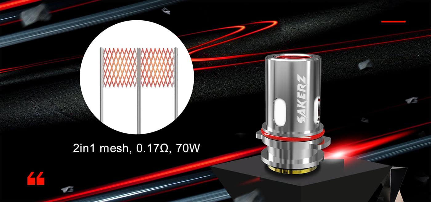 Mesh Coils, DTL Vaping, Multiple Resistances (0.16Ω–0.4Ω), Advanced Mesh Tech, Sakerz Tank Compatible, Tool-Free Press-Fit, Extended Coil Longevity.