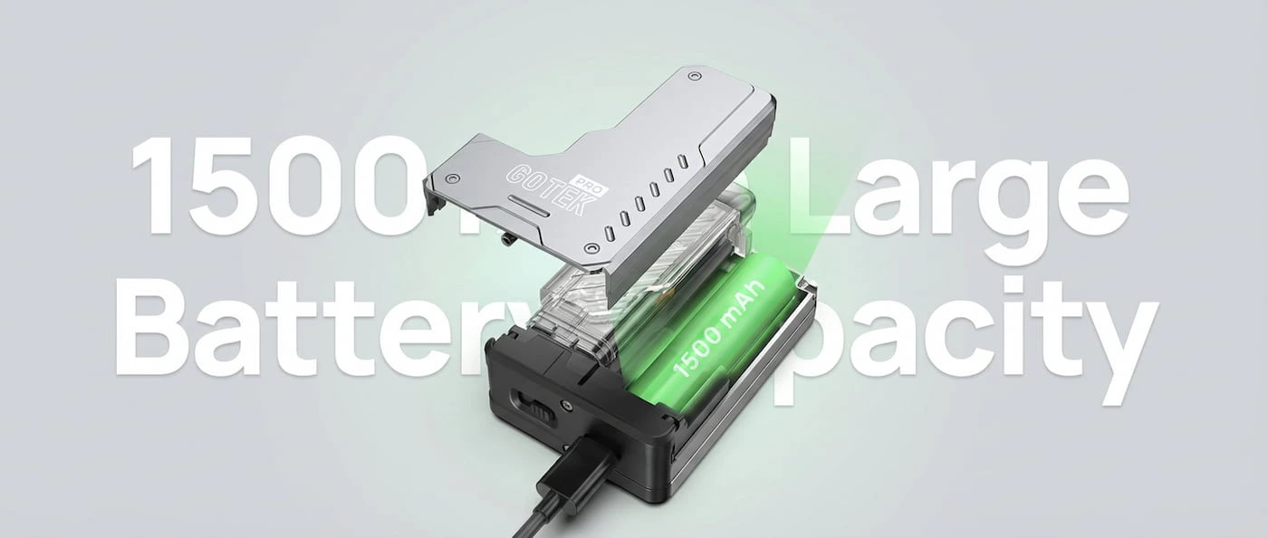 The Gotek Pro features a larger 1500mAh battery and a sturdier metal body, offering longer battery life and a more premium feel compared to other Gotek models.