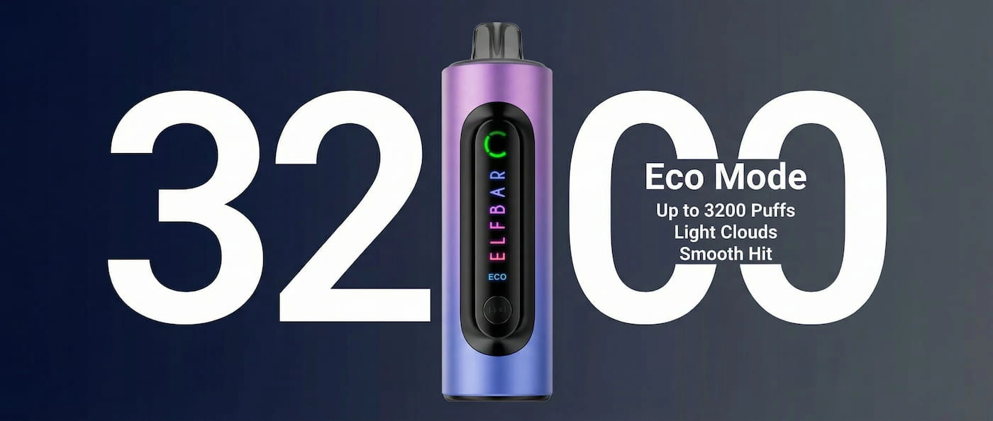Up to 3200 Puffs (Eco Mode) – 2400 in Normal, usage dependent