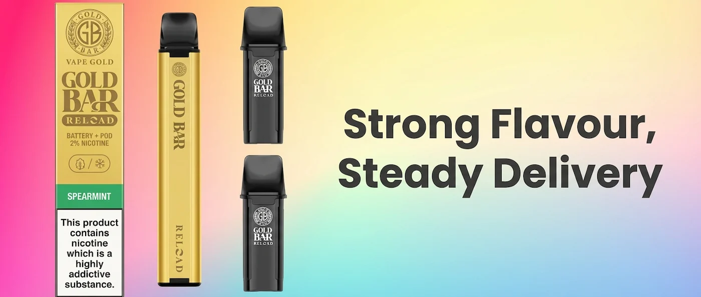 The Gold Bar Reload Pod Kit is best for anyone switching from disposables, beginners who want a compact MTL pod system, and vapers who can't be prompted with refilling. You're getting a reusable 500mAh device, simple inhale activation, and flavour-forward prefilled pods in 20mg nic salt e-liquid.