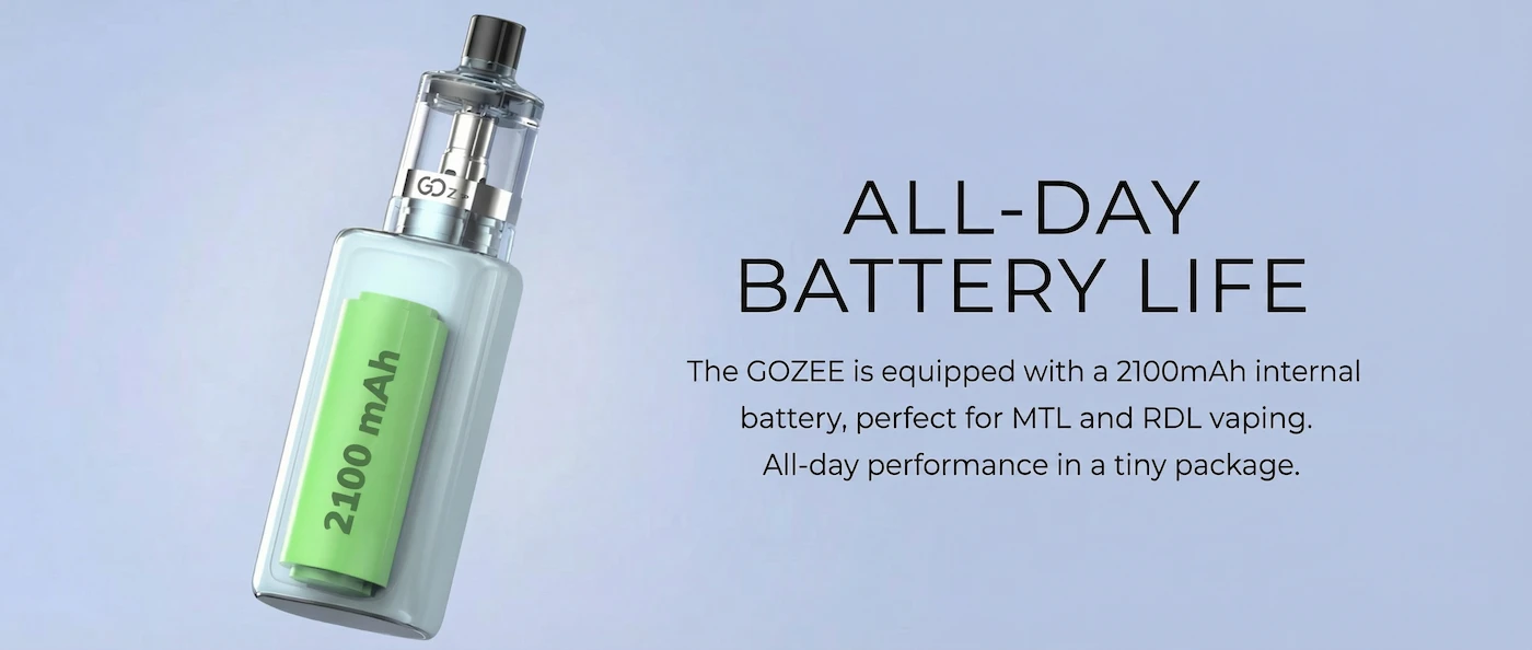The 2100mAh battery is the main reason people pick Gozee over smaller kits. Fewer panic charges, less getting caught short when you're out.