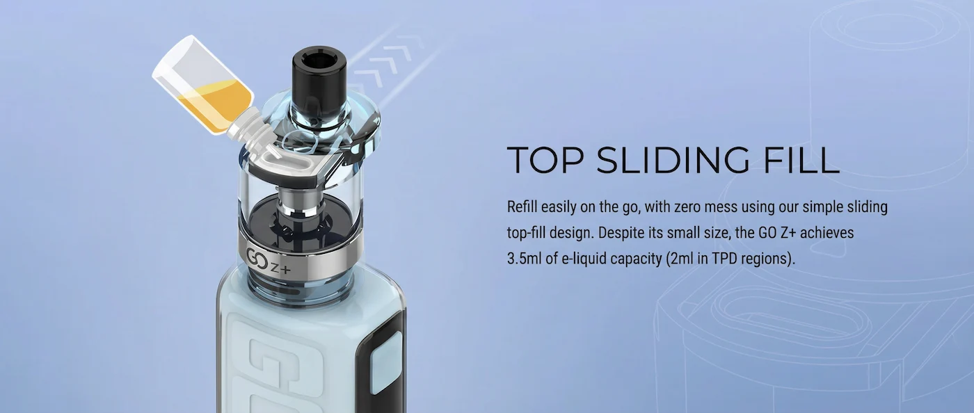 2100mAh Battery, Compact MTL Device, Variable Wattage, Top-Fill Refill System, Z-Coil Compatible, MTL/RDTL/DTL Vaping.