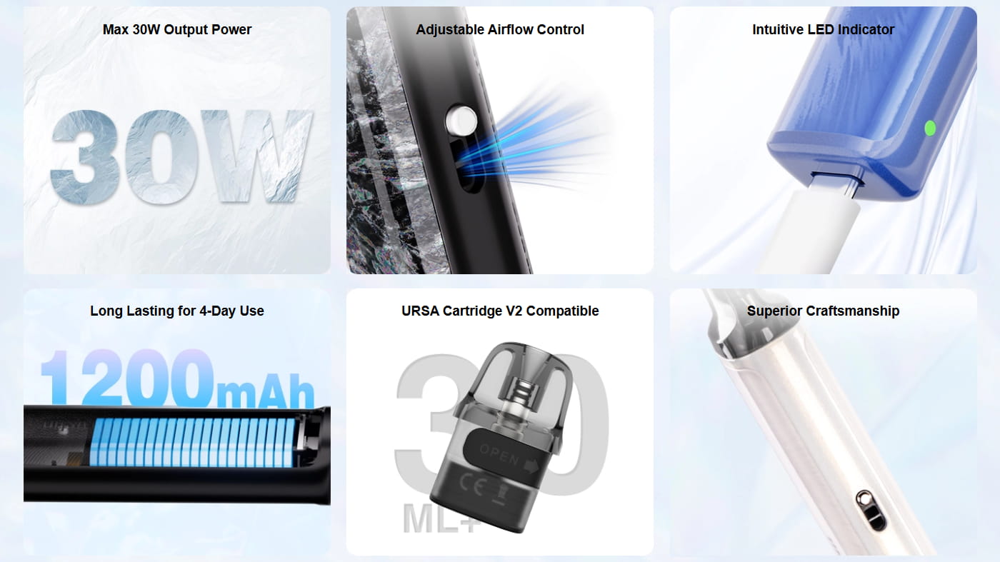 Powered by a robust 1200mAh internal battery and capable of up to 30W output, the Ursa Nano 3 comfortably supports both MTL vaping and restricted DTL styles. Whether you are transitioning from disposable vapes, stepping up from a basic starter vape kit, or simply want a reliable pocket-friendly device, this model fits seamlessly into daily use.