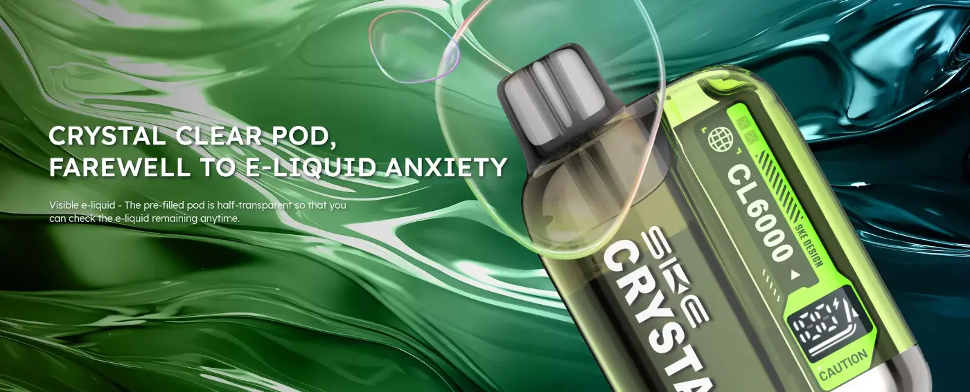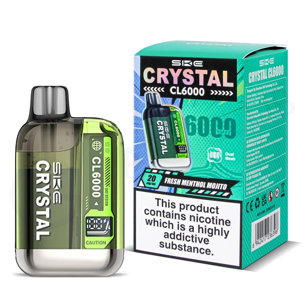 The SKE Crystal CL6000 Prefilled Pod Kit is a reusable, draw-activated vape designed for users who want disposable-style simplicity with a longer lifespan. Featuring a 2ml prefilled pod with built-in mesh coil, paired with a 10ml refill container, the CL6000 delivers up to 6000 puffs in a TPD/TRPR-compliant format.