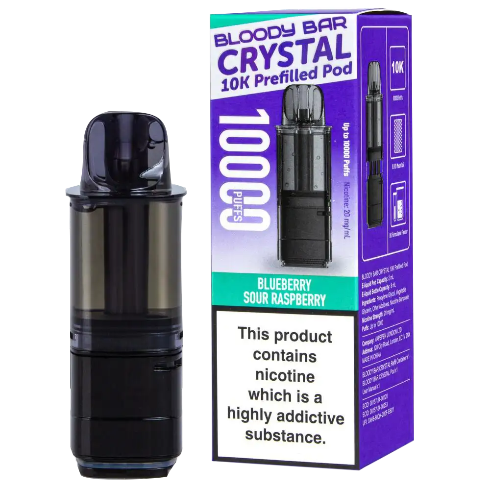 For a tangy kick, the Blueberry Sour Raspberry Bloody Bar Crystal 10K pods are a top contender for your Bloody Bar Crystal 10K Kit. The unique 2ml plus 10ml configuration provides a total of 12ml of e-liquid, automatically feeding the coil as you vape.